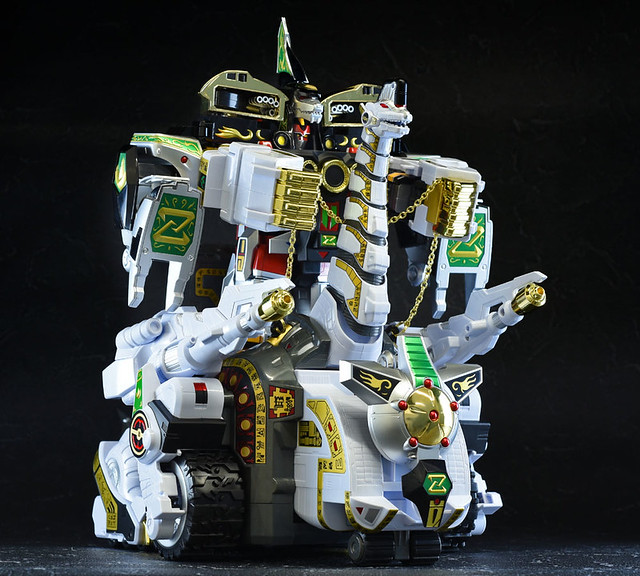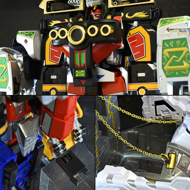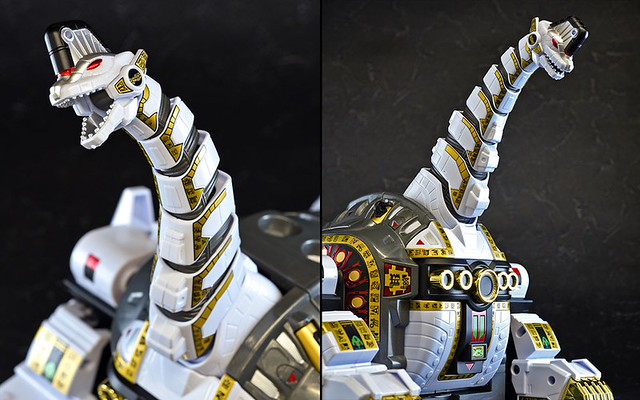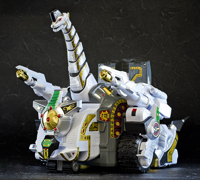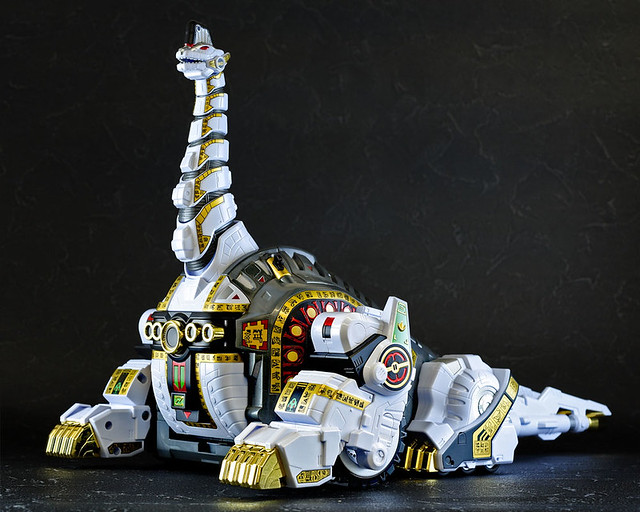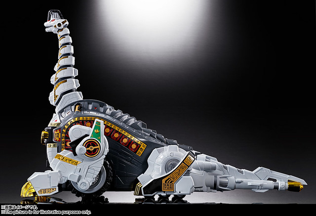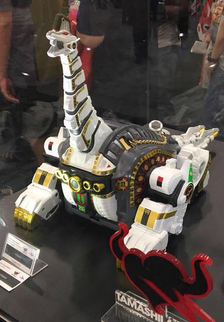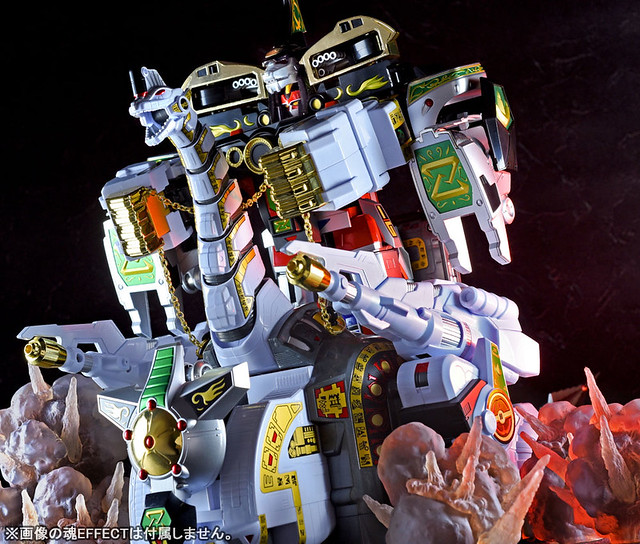 知名日廠Bandai萬代玩具公司的超合金魂系列,之前以《恐龍戰隊ZYURANGER》特攝劇集為題材已經公開過「大獸神」以及「皇龍凱薩」後,這次於美國舉辦的「POWER MORPHICON」展示會上公開了超合金魂 《恐龍戰隊ZYURANGER》「獸騎神帝王腕龍(獣騎神キングブラキオン)」的彩色試作樣品,其尺寸真是會是非常巨大的,目前先行公開情報預覽照片。