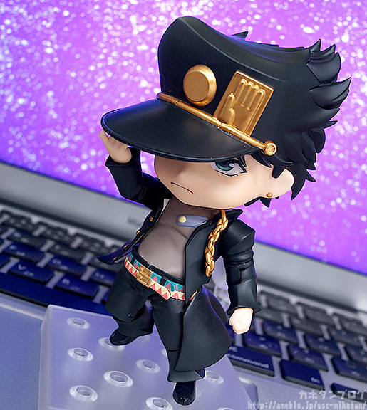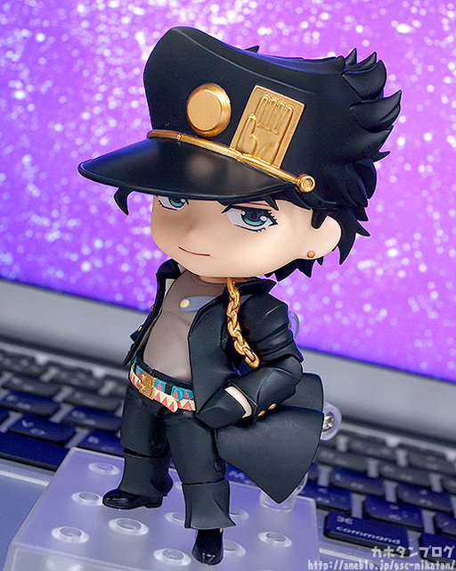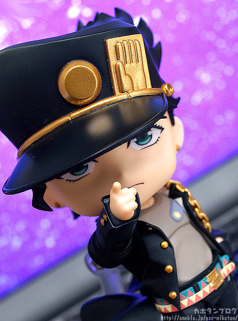 這次以《JOJO的奇妙冒險 星塵遠征軍》電視動畫版本的「空条承太郎」造型來呈現,附有神情精悍的「普通臉」、像是使出連續攻擊的「喔啦喔啦臉」以及充滿自信的「笑臉」等等三種可以替換,當然將他宛如與頭髮融為一體的學生帽也完整再現,另外還有將帽舌壓下並深深戴在頭上的版本可以替換,另外於GOOD SMILE COMPANY線上商店預購此作多附有特典「特製台座」,對《JoJo的奇妙冒險》有興趣的玩具人千萬別錯過了啊!