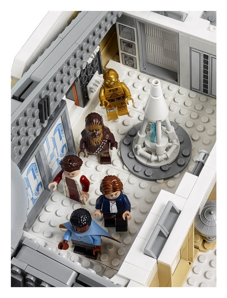 這次的盒組形式類似之前推出的死星,屬於將數個場景濃縮結合、兼具觀賞價值與把玩性的場景組,本作分成四大區,雲之城組完之後寬度來到58 公分,高度則是16 公分,包含莉亞他們的休息室,經過走廊到達、與黑武士面對面的用餐間,路克與黑武士決鬥的露台,停機坪、垃圾處理室跟碳凍室......等,比例雖然都被縮小了,但具有不錯的還原度,搭配豐富的人偶,絕對可以讓星戰迷一邊玩樂高,一邊回味電影劇情!值得各位玩具人慢慢賞玩~