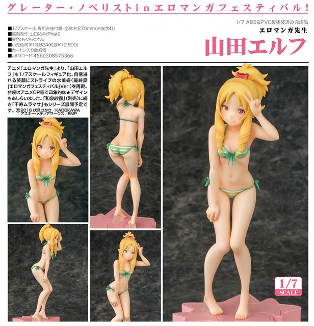 之前Phat!公司以《情色漫畫老師》電視動畫為題材已經公開過「和泉紗霧」後,近日繼續公佈了一樣是劇中主要角色人物「山田妖精」的1/7比例上色完成品,官網近日公開其宣傳照片以及販售相關資訊。這次是以最終回"情色漫畫祭典"當中身穿條紋泳裝造型來呈現,台座則是以動畫片頭曲中出現的星型來設計,喜愛《情色漫畫老師》系列作品的玩具人可以參考一下歐!