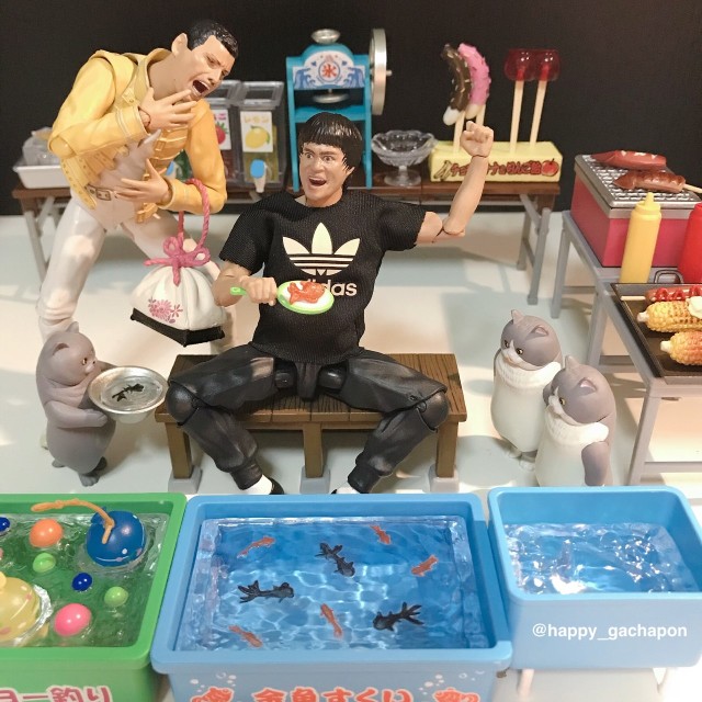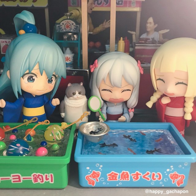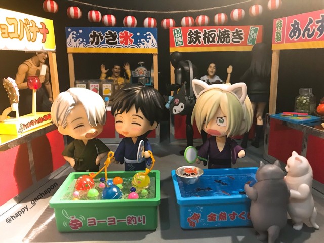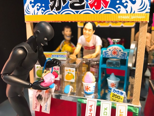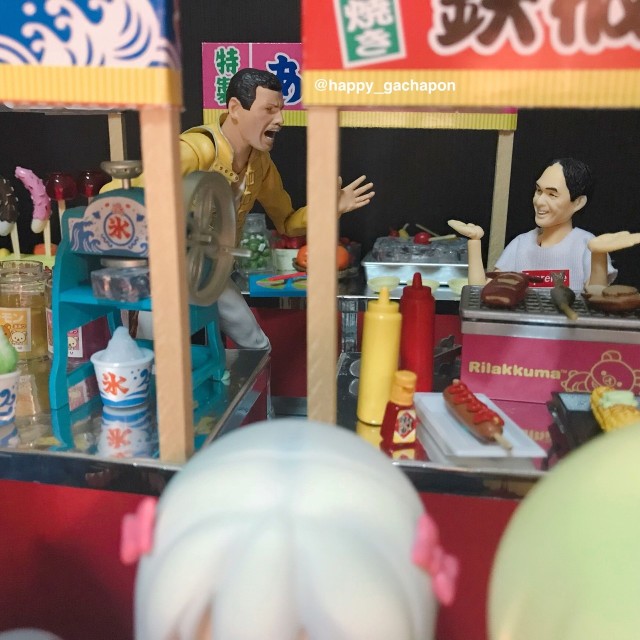 而為了更忠實呈現祭典的場景,我參考了特典的攤位樣式,自製了4個攤位以及造型燈籠。