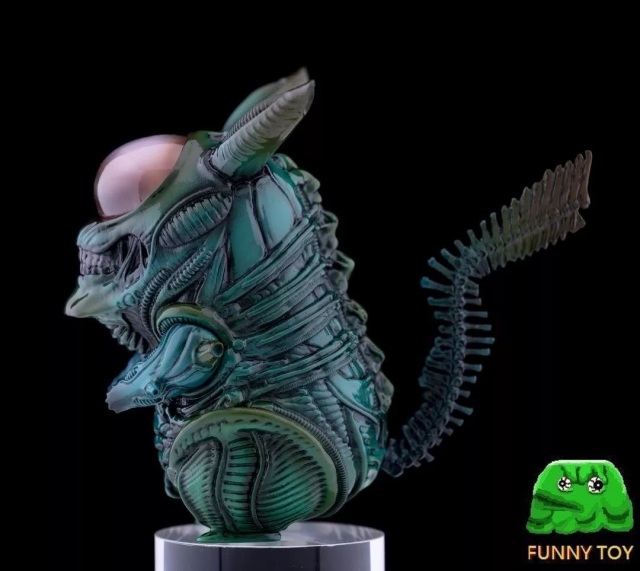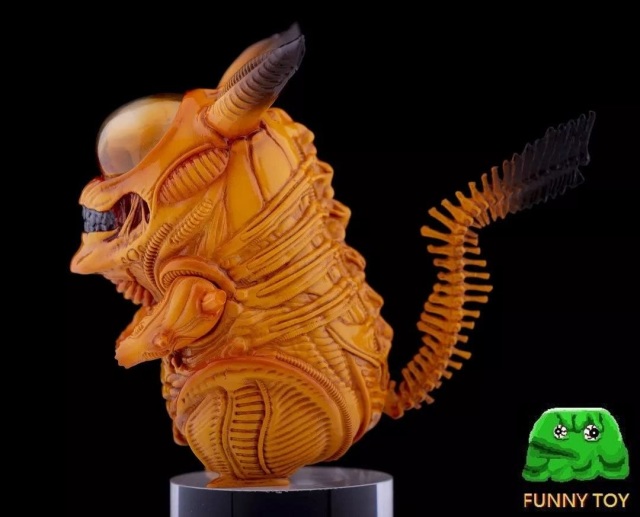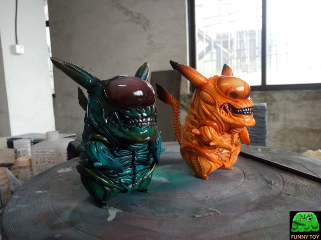 Tooth Fairy製作了兩種款式,一種是以參考異形為原型的墨綠色,而另一款則是以皮卡丘為參考的深橘色亮相,在製作上也非常仔細,不論是身上的紋路或是頭上的腦殼還是牙齒尾巴等等,都是經由設計師的仔細雕琢所呈現出來的。
