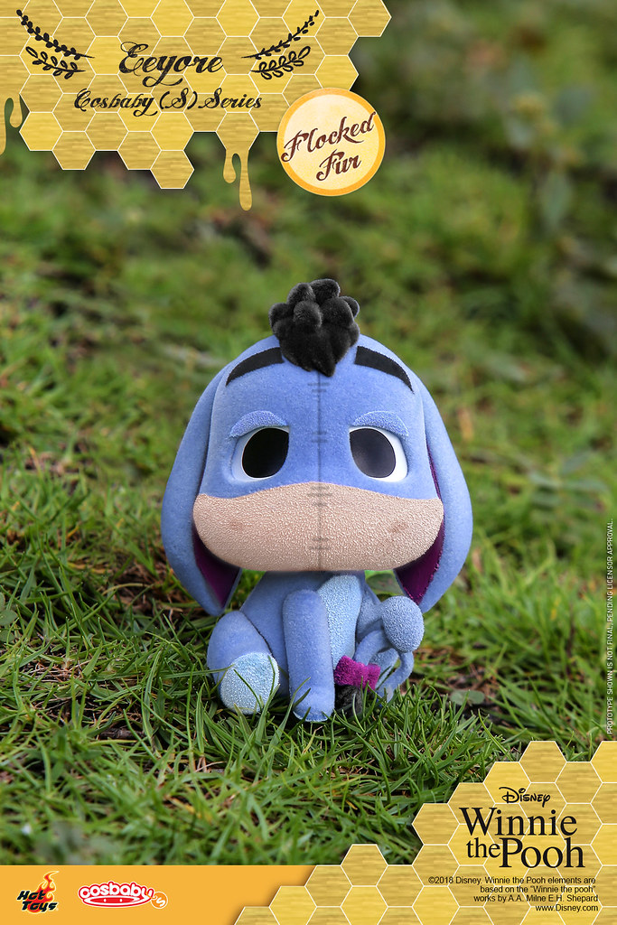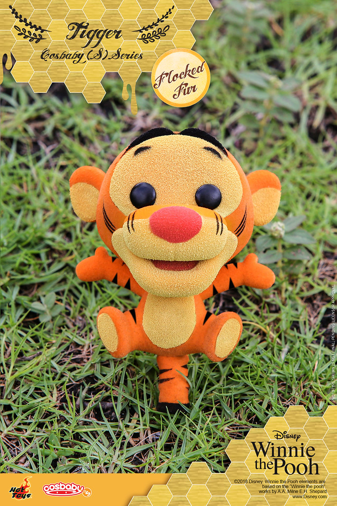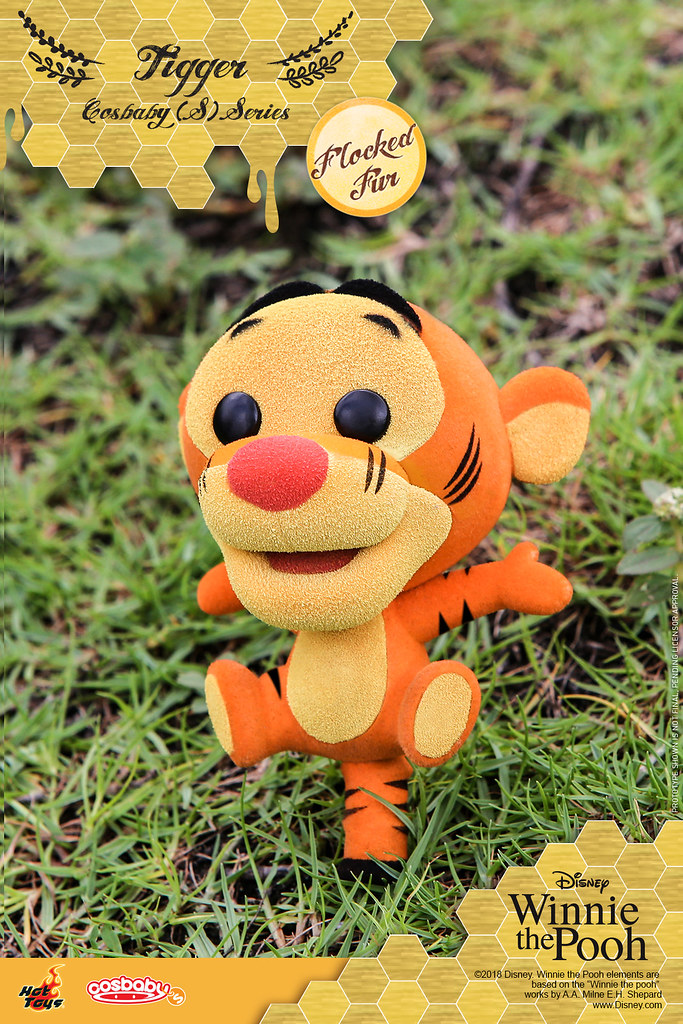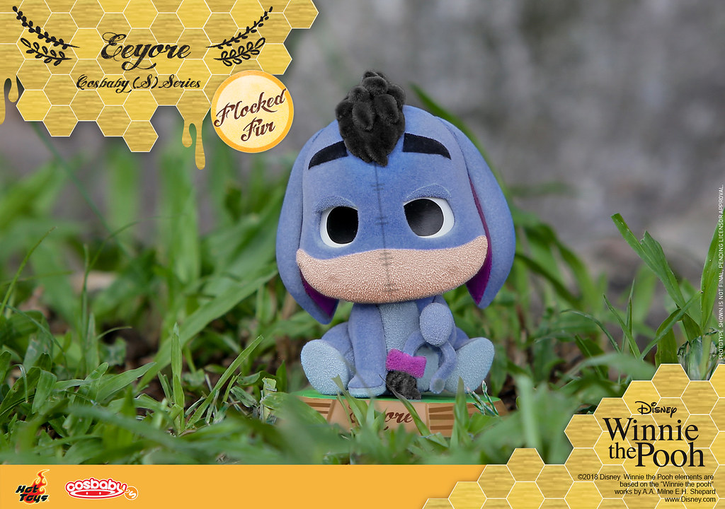 拿著蜂蜜罐、穿著經典紅色上衣的維尼,右腳還微微地抬起,小豬被放大的耳朵更是療癒,小花還可以拿起來抱在懷裡,跳跳虎則是直接以用尾巴支撐自己的招牌形象現身,四肢變得短短的,歡樂張開的樣子十分俏皮,呈現坐姿的屹耳有著滿滿厭世感,眼睛也有點沒精神,尾巴上的粉紅色蝴蝶結和頭頂的鬃毛都忠實再現;而這次的四款Cosbaby 還附有台座可以搭配展示喔~