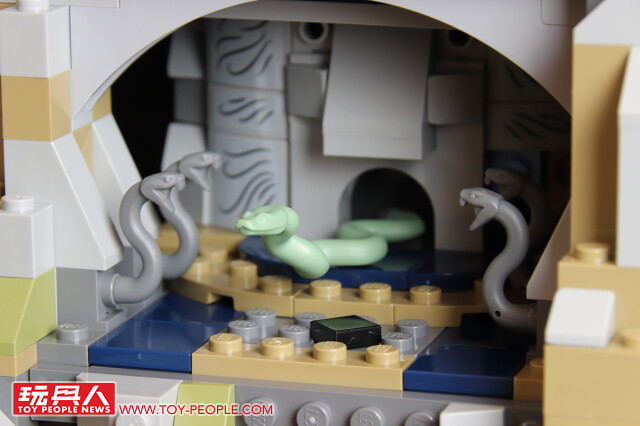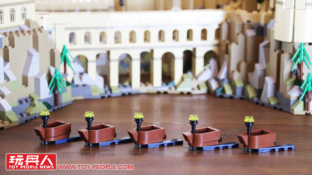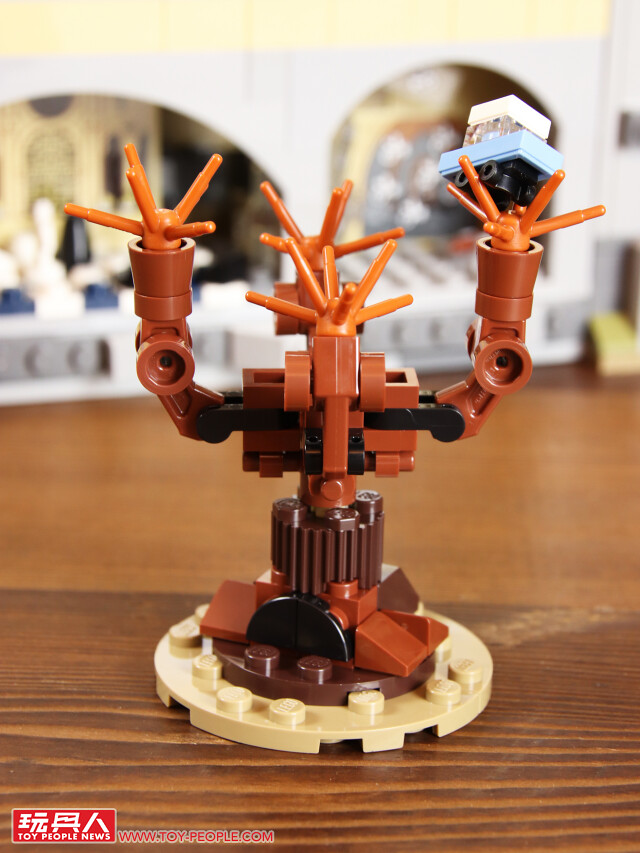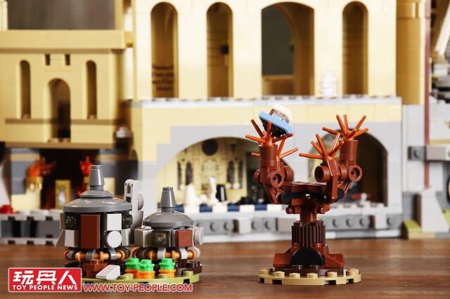 ▼眾多長著翅膀的鑰匙這裡採用將貼紙貼在透明磚上的方式重現,當然掃帚也要有啦~ 在一旁的則是經典的巫師棋盤場景,這都是出自於第一集《哈利波特:神秘的魔法石》的場景。