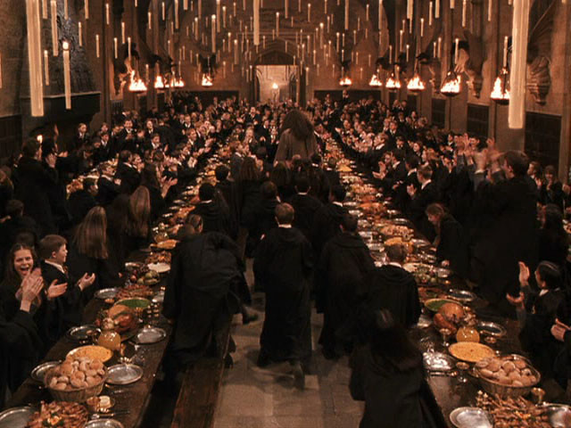 ▼霍格華茲的餐廳是相當重要的場景,新生們入學的分院儀式、學生們的交誼、學院分數統計都在這裡。