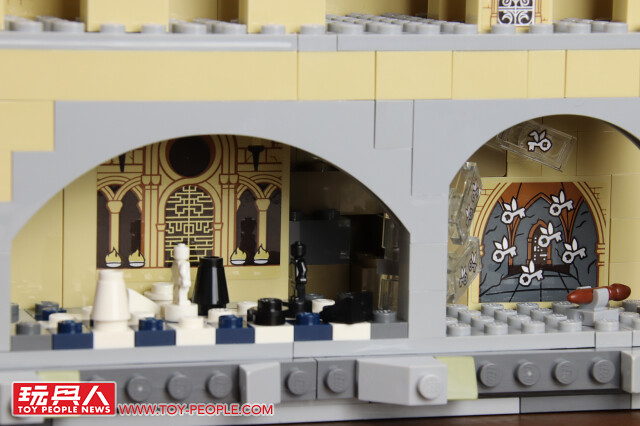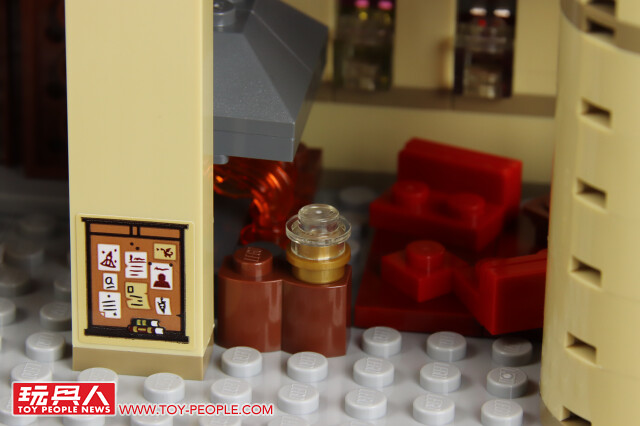▼接下來就開始進入內裝細節的部分吧!從貼紙的圖像到場景的堆砌,真的有太多驚喜跟巧思等著粉絲們來挖掘了阿~這裡是大家最熟悉的大廳,可以將Microscale 人偶都放在這裡玩,重現「葛來分多加十分」的黑箱學院分數統計程序XDDDD