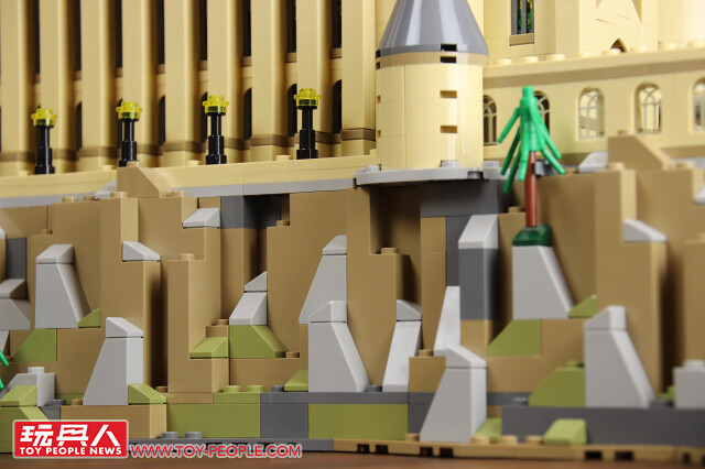 ▼在峭壁的部分用上許多不同色的小零件來修飾形狀,使整體有著富含層次的視覺效果,而且還有樹木歐~