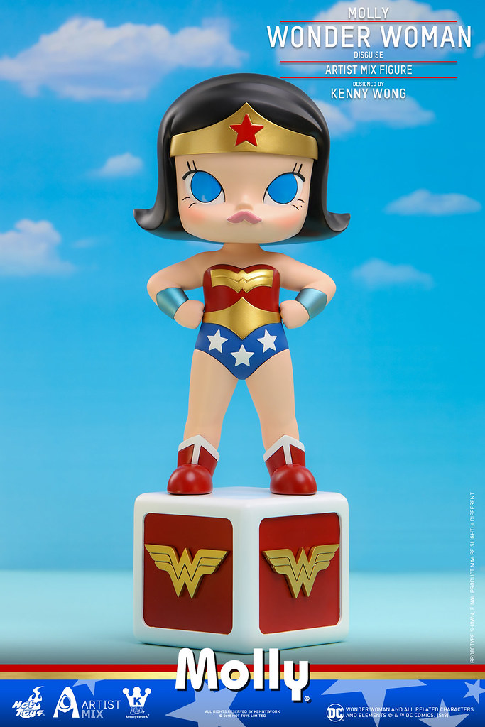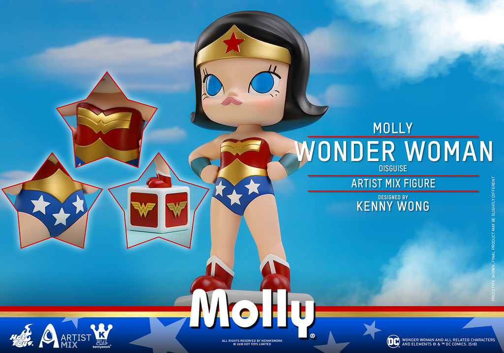 Molly 是「Kenny Wong 王信明」老師創辦Kennyswork 後的首個作品,現已成為極具代表性的超人氣角色,有著炯炯有神的大大雙眼跟嘟著的小嘴巴,給人天真浪漫的純真印象,相信玩具人們一定不陌生,喜愛設計師玩具的玩家更是為她瘋狂!這次將DC 漫畫中的兩大人氣角色,小丑女、神力女超人以Molly 的獨特設計風格重新詮釋,實在是太夢幻啦~