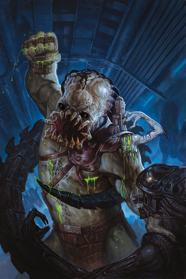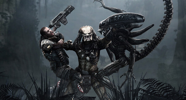 ▼被異形抱臉體附身在終極戰士身上而誕生的異形“終戰異形(Predalien)”