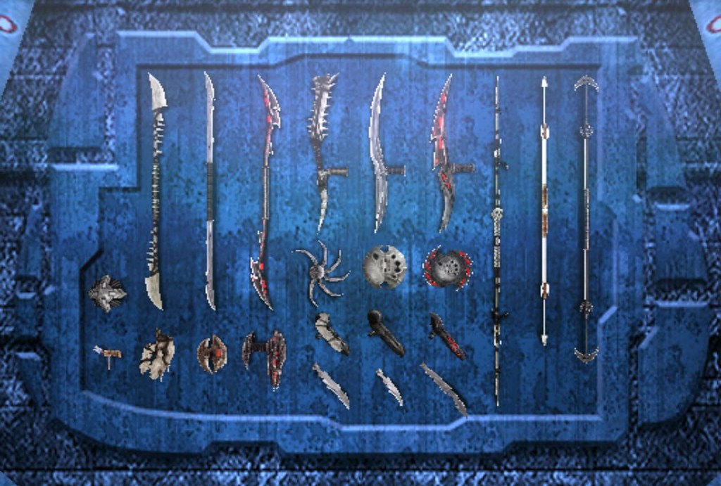 Whip(鞭子):擁有快狠準並兼具遠距離攻擊等特質的武器,通常都是用異形尾巴製作,可以輕易將對手給劈成兩半。