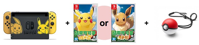 Nintendo Switch『精靈寶可夢 Let's Go!皮卡丘/伊布』特別組合內容包含了特殊設計的 Nintendo Switch 、《精靈寶可夢 Let's Go!皮卡丘》or《精靈寶可夢 Let's Go!伊布》遊戲軟體、精靈球PLUS、Nintendo Switch Online 免費使用券 3 個月,參考售價為 37,980 日圓+稅。