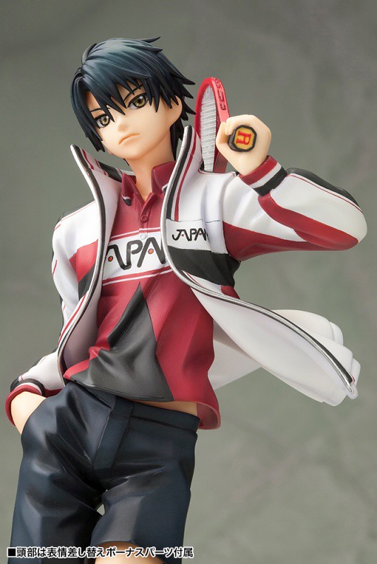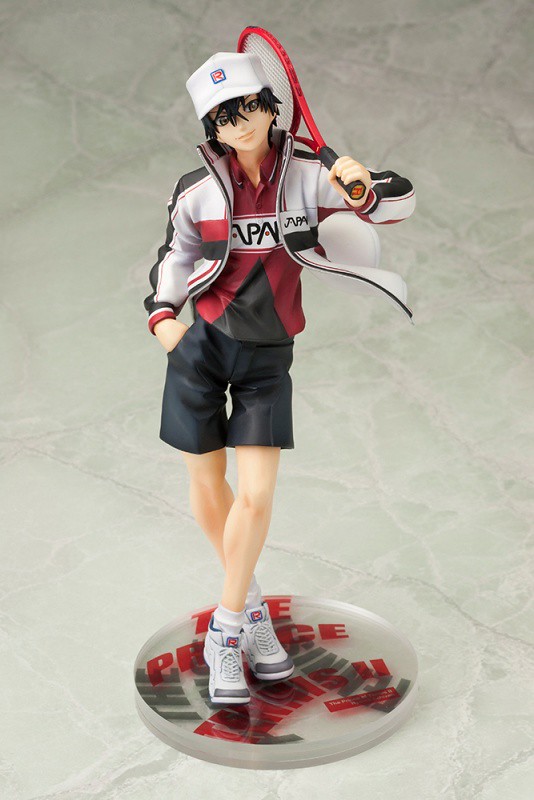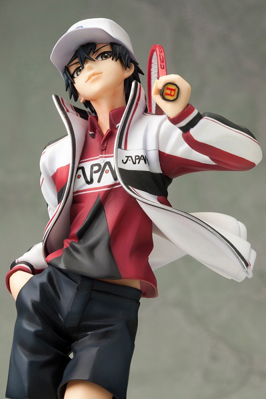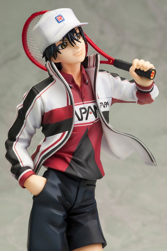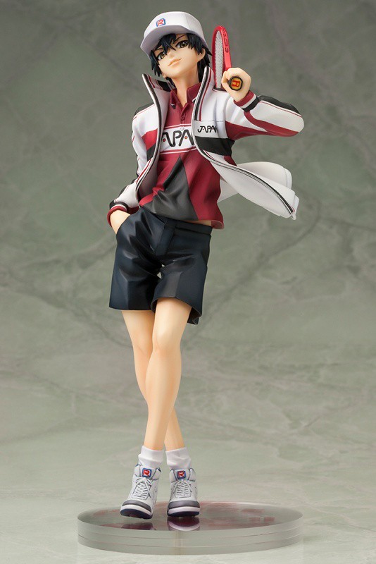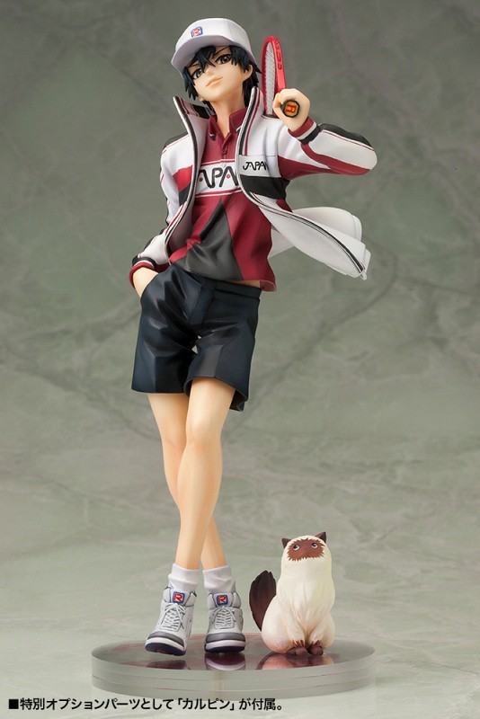 「ARTFX J 越前龍馬 更新包裝ver.」高約21 公分,透過傳神的臉部表情與肢體動作,將越前龍馬跩跩的氣質完美展現,囂張地把球拍架在肩膀上,彷彿聽到了那句口頭禪「你還有得學呢!」,有兩種表情可以替換,而整體造型是以參加「U-17 高中日本代表候補合宿」的時期來設計,服裝皺褶、腿部肌肉線條、球鞋細節都施以精緻的刻畫,飛揚的外套更加強了本作的躍動感,還有附上超~可愛的貓咪「卡爾賓」,透明底座還印上了「The Prince of Tennis」的字樣。