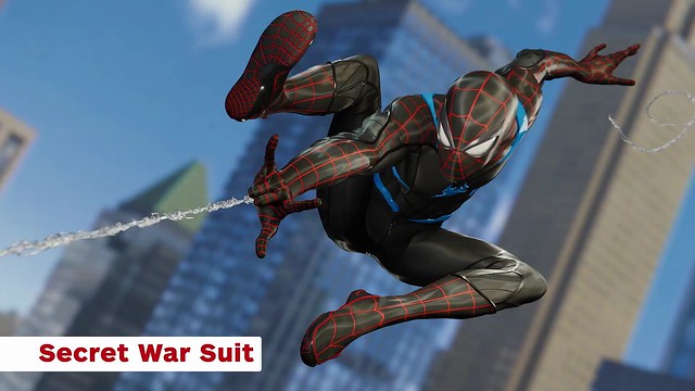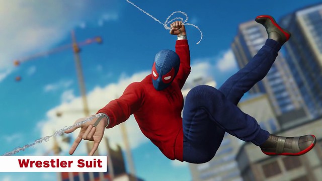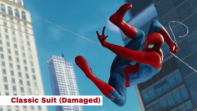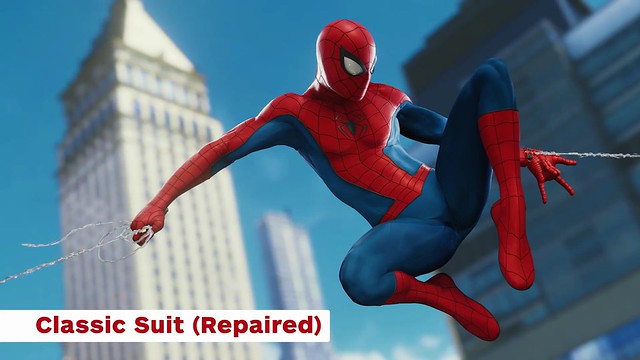 首次登場:在本遊戲首度登場,由製作團隊Insomniac Games 原創設計。 這套服裝最大的特徵,在於使用的不是一般過去蜘蛛人常見的萊卡緊身衣材質,而是使用類似運動服的剪裁設計;除此之外,紅藍配色的戰衣也首度改以白色的蜘蛛圖樣來搭配。
