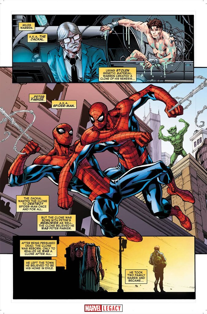 出自於正史宇宙Earth-616。 一位愛上關‧史黛西的教授Miles Warren(反派“胡狼”),在關死後怪罪於蜘蛛人,所以開始複製蜘蛛人。 其中一位複製人被Miles Warren 抹殺之後倖存下來,覺得自己沒有存在的價值,後來就把自己取了班伯伯的名,以及梅嬸的娘家姓而成為了“班‧萊利(Ben Reilly)”。