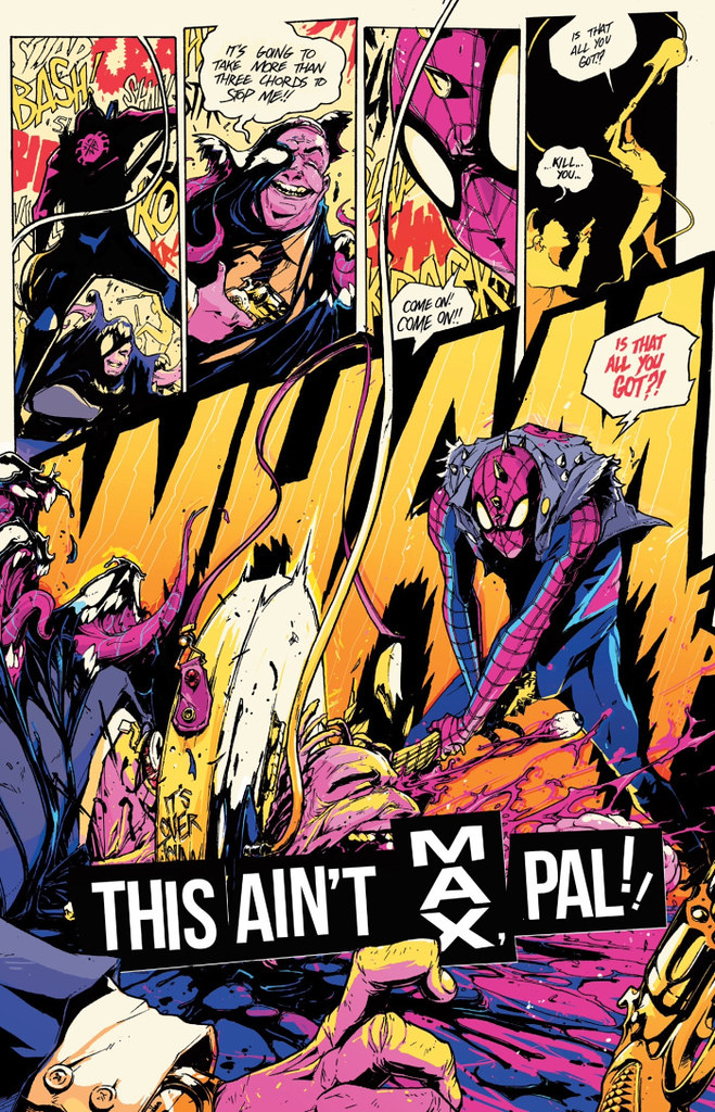 平行世界Earth-138 的蜘蛛人,本名“Hobart Brown”,他帶領著反抗組織“Spider Army”對抗奧斯朋總統(President Ozzy Osborn)的政權。 奧斯朋總統利用共生原的技術強化了“雷霆部”,使麾下所屬的所有員警獲得共生原的力量;後來龐克蜘蛛人帶領著“Spider Army”擊倒雷霆部,並成功殺死奧斯朋總統。