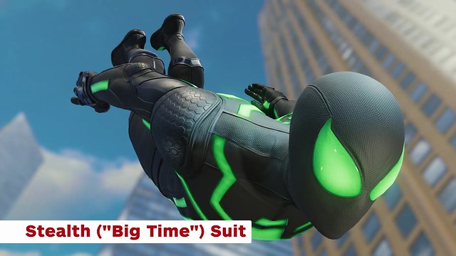 正式名稱為“潛行裝(Stealth Costume)”,又被粉絲稱為“大時代裝(Big Time Costume)”,與蜘蛛戰甲馬克2相同,是由彼得帕克為了對抗反派惡鬼(Hobgoblin),依據初代蟻人皮姆博士的理論,在Horizon Labs 所開發的服裝。 服裝內建置了全諧波網路系統(omni-harmonic mesh),在開啟迷彩模式下,戰衣上的蜘蛛圖樣會發出綠光,此時戰衣能夠扭曲周圍的聲波與光線而進入完全在視覺上與聽覺上隱形的效果;同行的伙伴必須使用特製的濾鏡與音效器材才能看到並與蜘蛛人溝通。