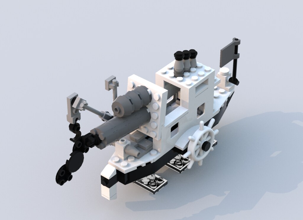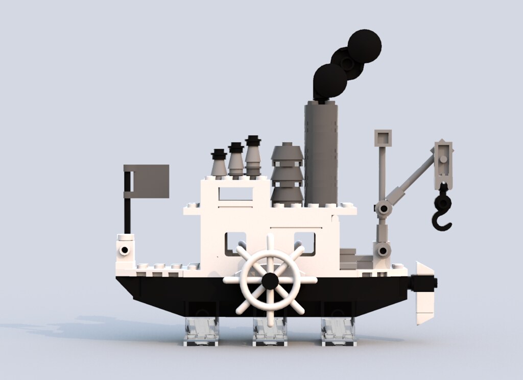 用上了黑、灰、白磚精準地拼搭出那艘經典的汽船,兩側的水輪、煙囪、汽笛、鉤子......等細節都有不錯的還原度,黑煙也做了出來,駕駛艙可以打開,底部還有用透明磚所製作的支架,米奇的樂高人偶則是以「LEGO 71012 迪士尼人偶抽抽包」為基礎的重塗版本;另外,szabomate90 在之後也有做出一些更新,像是更改了船體的部分設計、改用平滑磚,使得船體更貼近原作,也增加了米妮人偶、牛、鳥,和吉他,好希望這組可以通過審核,正式商品化呀~!