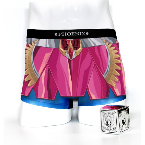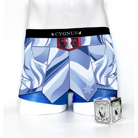 第三彈「青銅聖衣內褲」使用全新設計的圖樣製作,將原作中星矢、紫龍、 冰河、瞬、一輝等五位主要角色所穿的青銅聖衣特徵融入內褲中,例如天龍座的龍頭、仙女座的星雲鎖,每一款都透過精美的作畫,在前後左右都設計了絕妙的聖衣造型圖樣,彷彿穿上之後下半身的動作都能突破音速到達馬赫境界!另外第三彈也再度使用特製紙盒包裝,銀白色的設計大幅提昇豪華感!