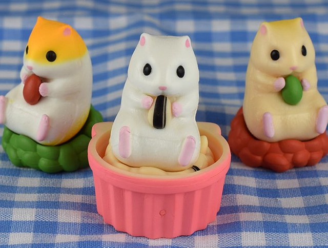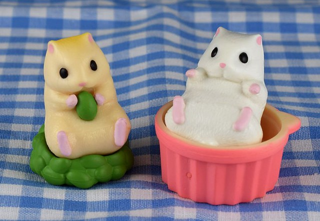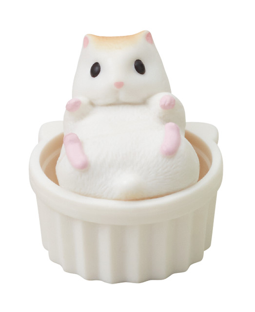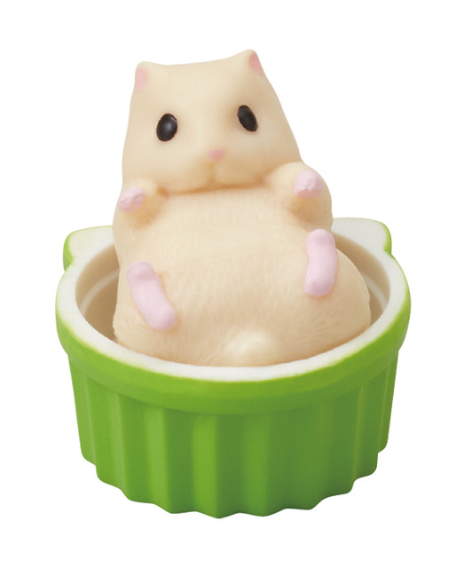 這次以相當療癒"吃著瓜子"的模樣來呈現,看著動物吃東西的模樣真是十分撫慰人心,底座還是設計成用瓜子推成的樣貌歐!另外還有躺著大字模樣在布丁甜品杯當中也是很逗趣,喜愛倉鼠系列的玩具人千萬別錯過了歐!