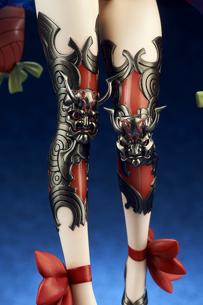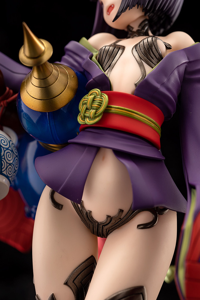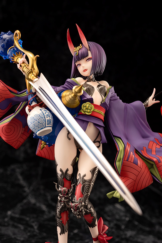 「Assassin/酒吞童子 1/7比例模型」以遊戲中第三再臨的插畫為基礎製作,露出度極高的和服帶有複雜的皺摺細節及躍動的造型,肌膚白皙的幼女身軀帶有極致肉感,特別是臀部與大腿的曲線相當美,內衣與劍更施以高質感的金屬色塗裝,巨大的葫蘆酒壺使用透明材質製作,表面刻有細膩雕紋。相較於先前在 WF2018[Summer] 販售的 GK 版本,完成品版更在提燈內設計 LED 燈,展示起來更具氣氛!