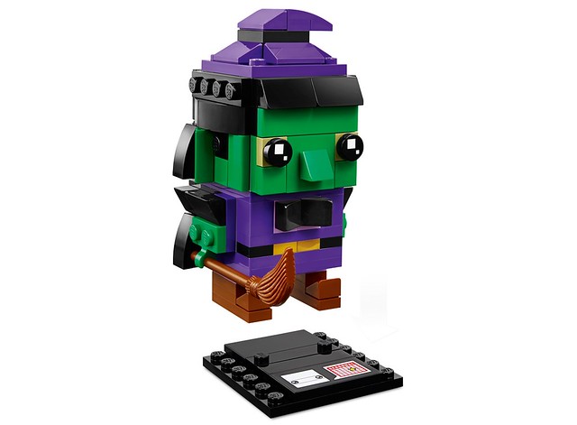 樂高在每年的特殊節慶都會推出相對應的「節慶包」盒組,而2018 年的節慶主題盒組都是以BrickHeadz 的形式來推出,小編覺得不僅比以往附屬陽春小場景的盒組更利於展示,跟拼搭角色的形式相比,也多了點俏皮味呢!先來看看女巫吧~用上了女巫最具代表性的綠皮膚、紫衣服,並且在許多小細節都形塑出女巫招牌的服裝造型,尖尖的鼻子和鞋子,帽子、斗篷的形狀也傳神地勾勒出來,除了人偶之外,兩側還有魔藥鍋、南瓜搭配展示,讓整體更有萬聖節的氣氛呀~