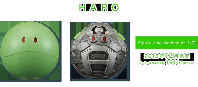 由日本 BANDAI SPIRITS 公司 HOBBY 事業部發行,細膩打造出機械外觀與內構的組裝模型「Figure-rise Mechanics」系列最新作將推出來自《機動戰士鋼彈》的人氣吉祥物「哈囉」!「Figure-rise Mechanics 哈囉」預計於 2018 年 12 月發售。