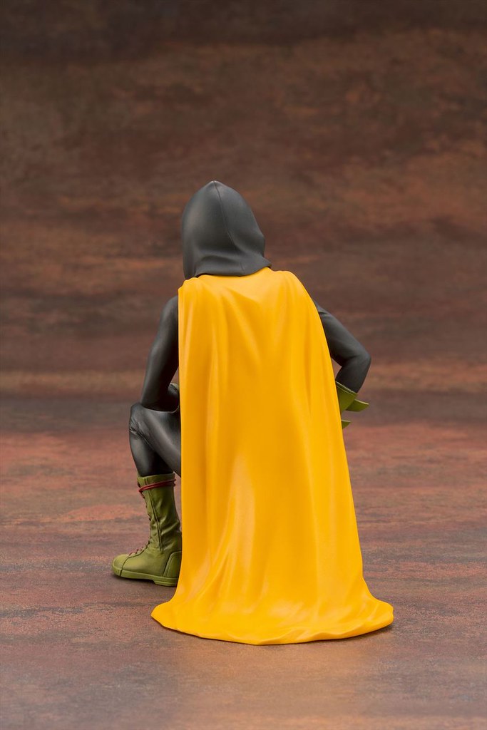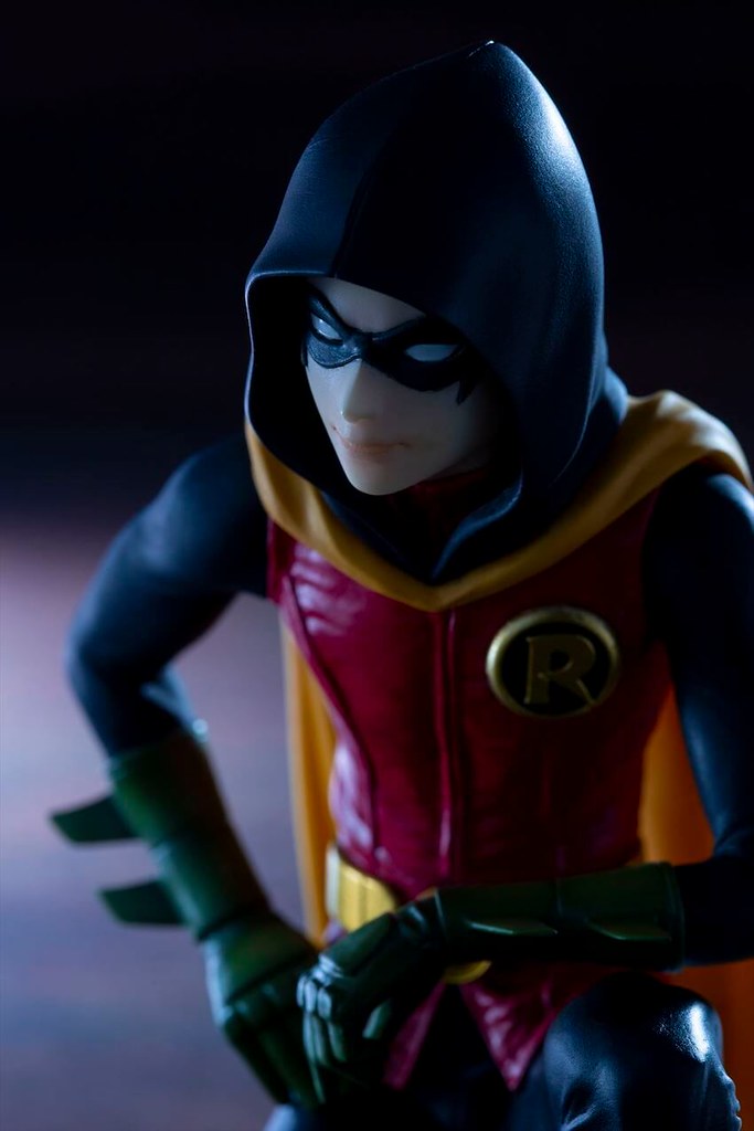 「IKEMEN 達米安 1/7 比例PVC塗裝完成品」高約12.5 公分,採用和前三任羅賓不同的跪姿來設計,並形塑出他細瘦的身形線條,特色的連身兜帽也忠實再現,短髮、自然垂地的披風、緊身衣褲、長靴......等細節都施以精準的造型刻畫,除了可以展現出自信的微笑之外,還附屬戴上眼罩的替換頭雕歐~而本作的初回生產限定配件是戴上眼罩與兜帽的頭雕,讓玩具人們有更加豐富的展示選擇!