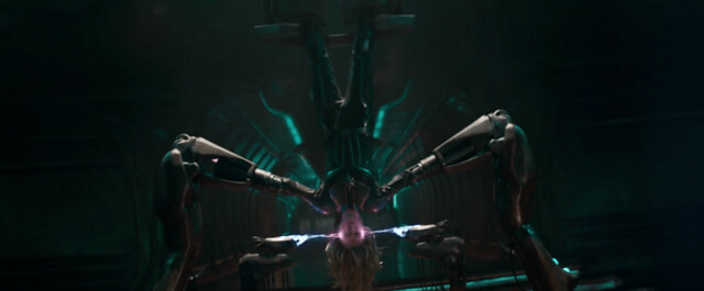 這一幕看到卡蘿爾被能量滲透,相當符合原作的的起源故事,推測就是在這時讓她獲得相關超能力變成驚奇隊長。(關於這一段原作的設定,可以參考我們之前的專題:https://www.toy-people.com/?p=42969)