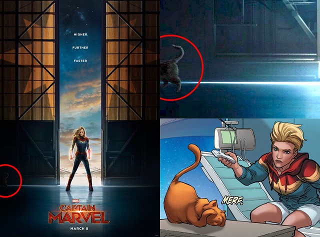 首款《驚奇隊長》宣傳海報,左下角調亮之後就會發現驚奇隊長/卡蘿·丹佛斯的寵物愛貓「橡皮糖(chewie)」的身影。