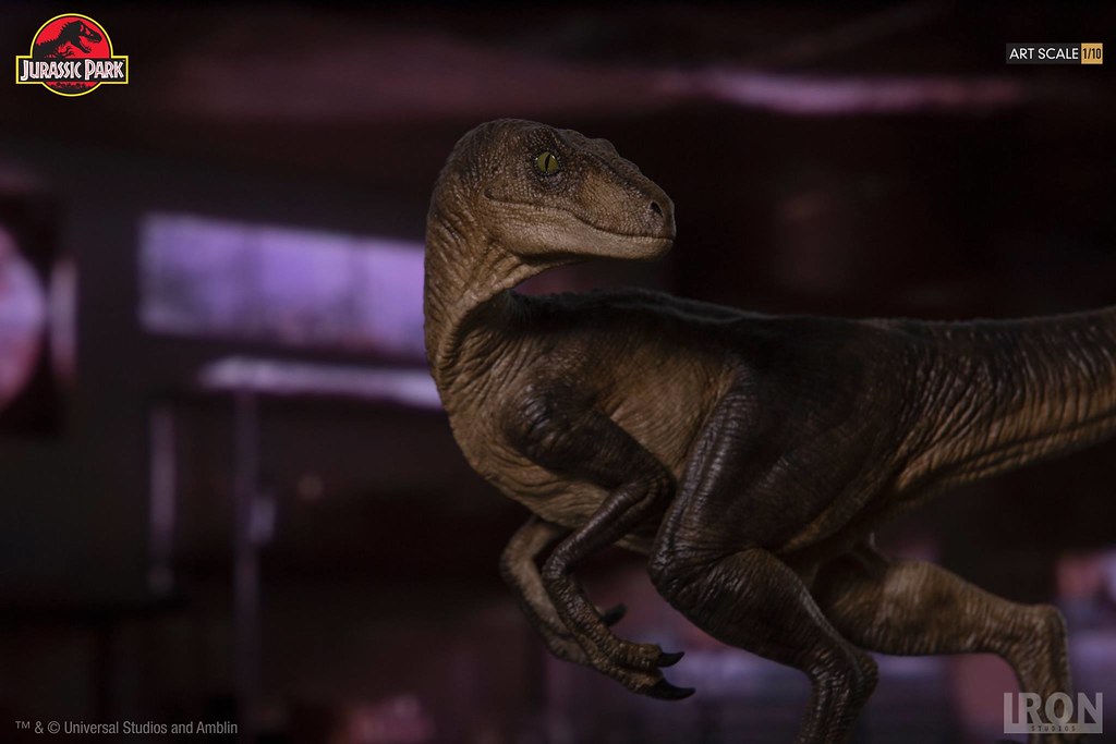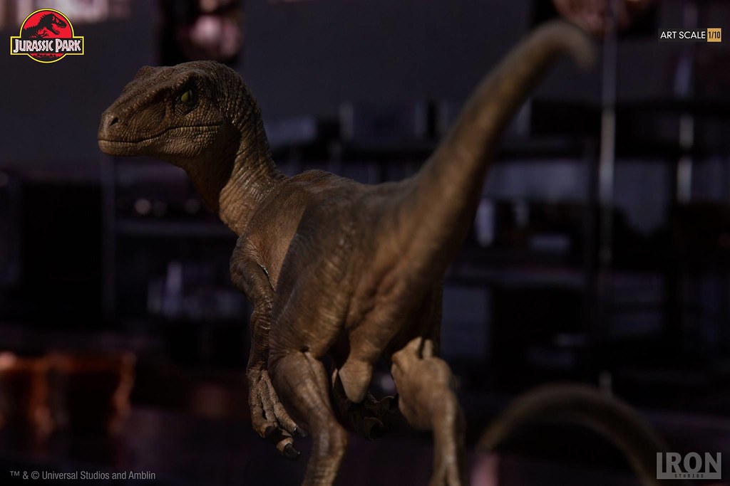 《侏羅紀公園》於1993年上映,由金獎大導「史蒂芬·史匹柏」執導,劇中的恐龍不但給人相當程度的逼真感,同時這部電影也顯著提升了大眾對於恐龍的興趣。在電影末尾,葛蘭特、愛麗、莉絲、提姆面對迅猛龍恐怖的追擊,歷經好幾次的死裡逃生,尤其是兩位孩子在廚方跟兩隻迅猛龍的「捉迷藏」,有如窒息一般的緊張程度、迅猛龍所帶來的壓迫感和真實感,相信讓許多玩具人印象深刻!