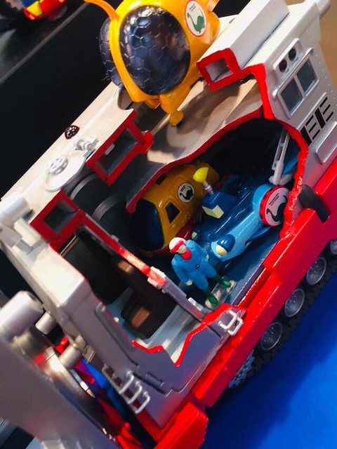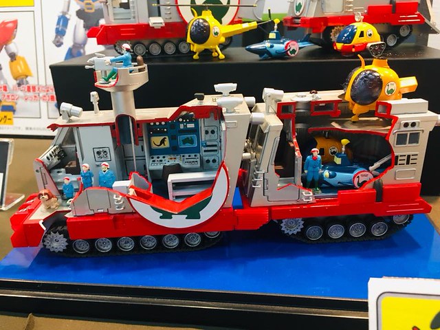 還特別將"生而自由號"作品以像是「剖面方式」來展示,將載具機體內部也仔細完整地再現出來,另外還附有救援直昇機"海鷗號(フリーシーガル)"、有履帶的小型戰車「獵犬號(フリービーグル)」以及內載的潛水艇「虎鯊號(フリーマッカール)」等等,還有9名隊員也以小人偶來呈現,喜愛《恐龍救生隊》早期作品系列的玩具人可以參考一下歐!