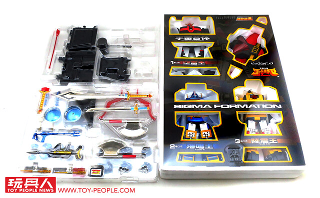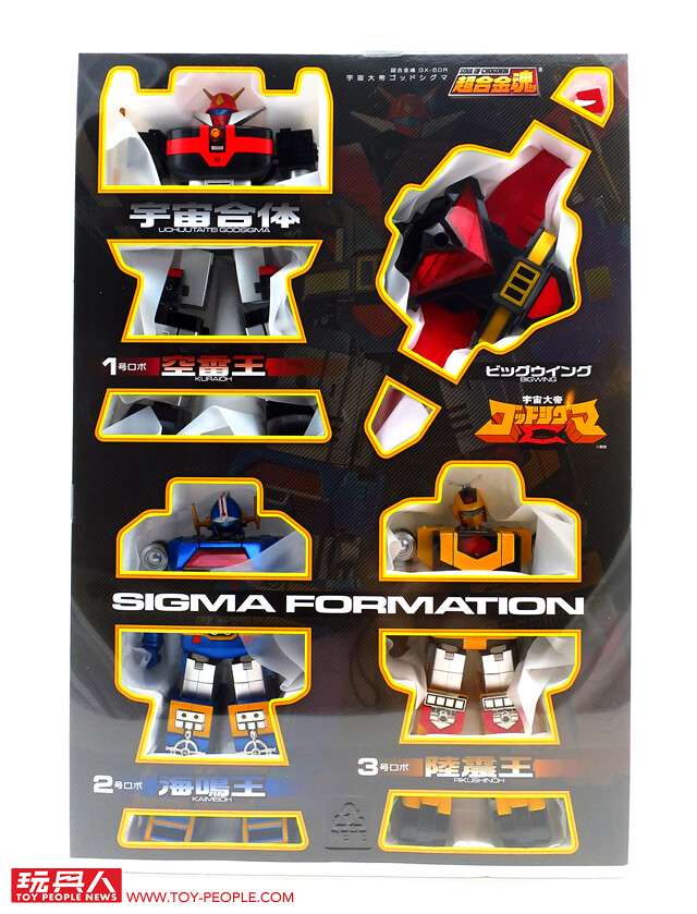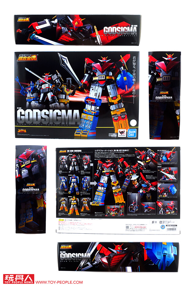 接著就是精髓中的精髓,經典中的經典,準備將四機合體「宇宙大帝 巨神西格瑪」!合體的結構基本上和前作「GX-60」一模一樣,同時出色的合體結構設計也是這款超合金魂被譽為名作的原因之一。
