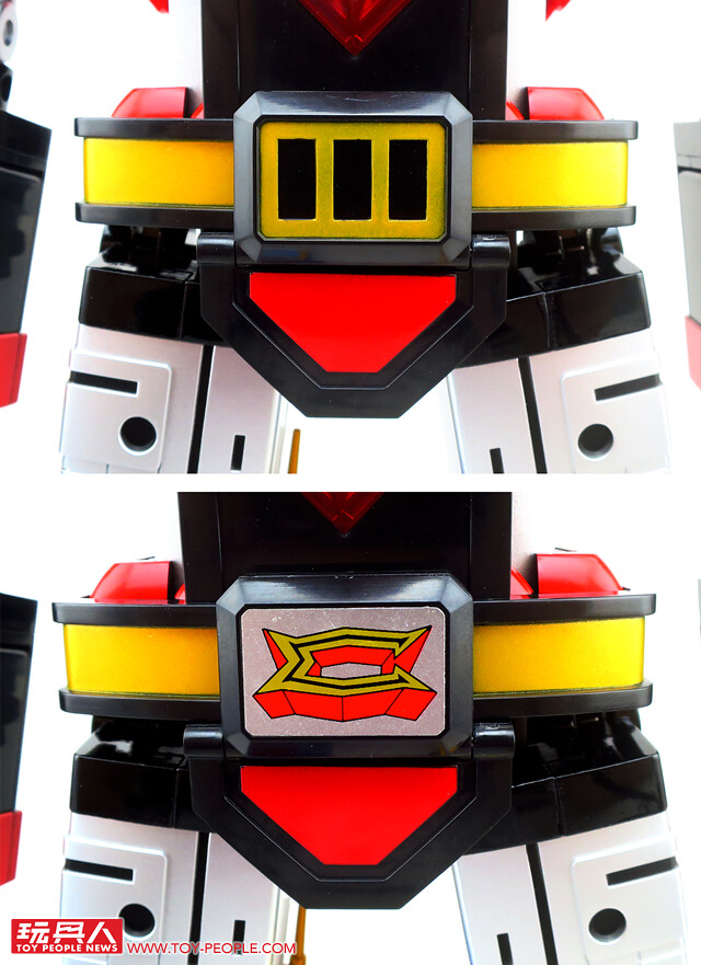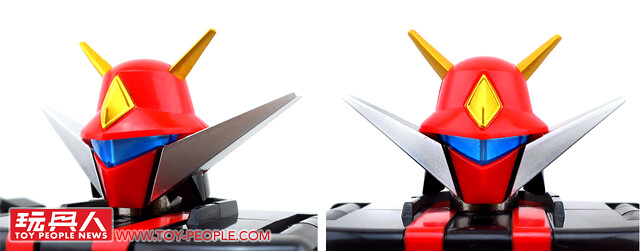 ▼ 新版空雷王胸前的原型透明零件可以拉出,直接和巨神飛翼胸甲預留的圓孔組合。