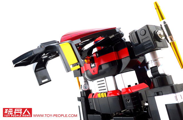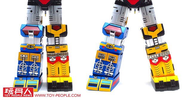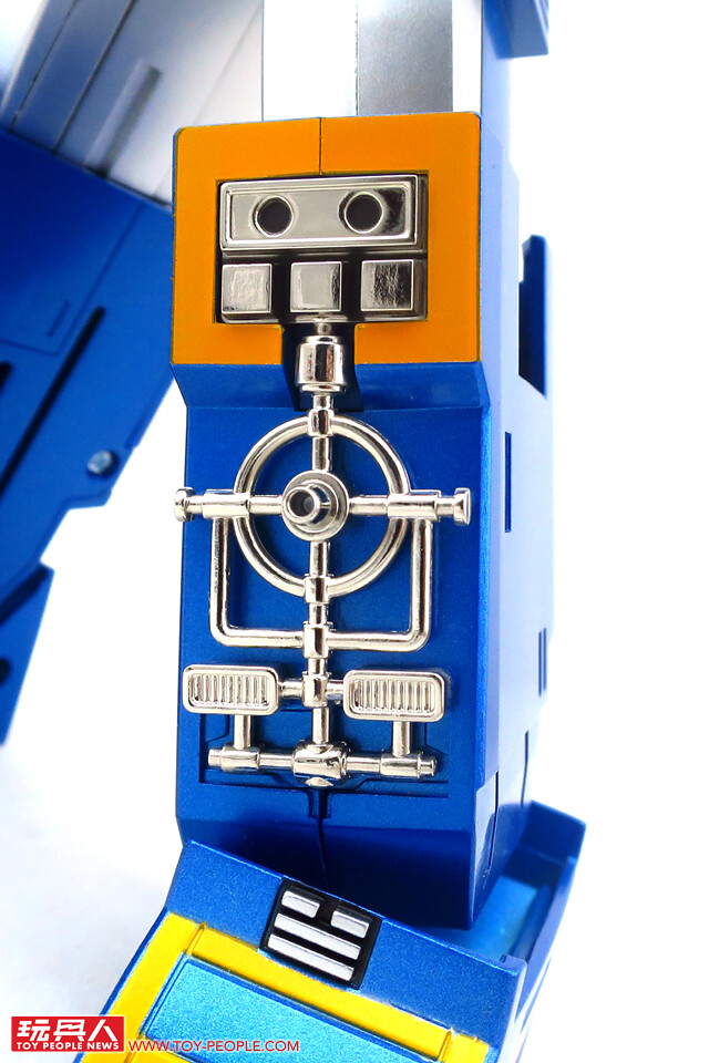 ▼ 透過特殊的腿部設計,空雷王能夠一鍵就將膝蓋關節抽出,抽出後的空間就能和海鳴王、陸震王結合囉,而巨神西格瑪的雙臂也像動畫中的設定一樣藏於空雷王的腳掌。