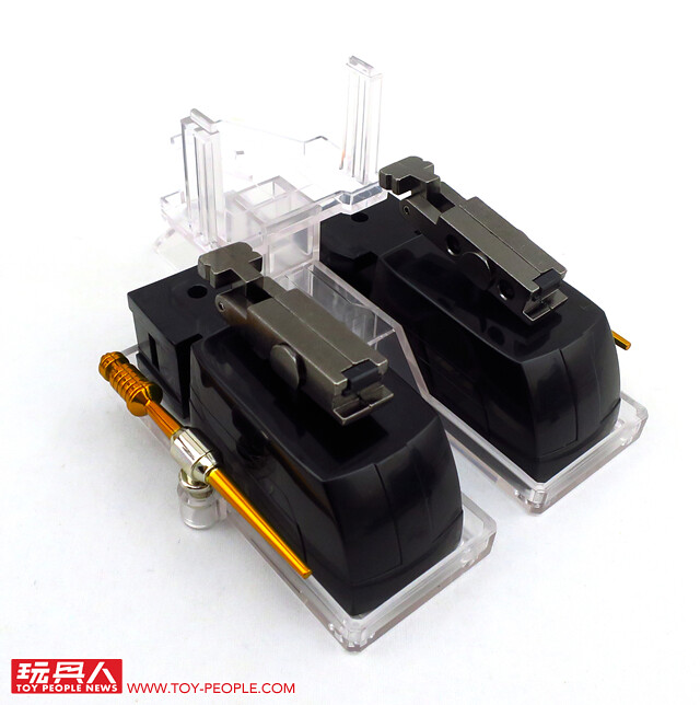 ▼ 兩片飛盤以金屬藍塗裝,還附有固定用的透明零件來裝備於雙手。