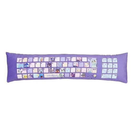 ▼ 鍵盤造型的手靠墊以代表幽靈系的紫色設計,上面可以看見不少幽靈系寶可夢。而另一面則是謎擬Q與皮卡丘的圖樣。