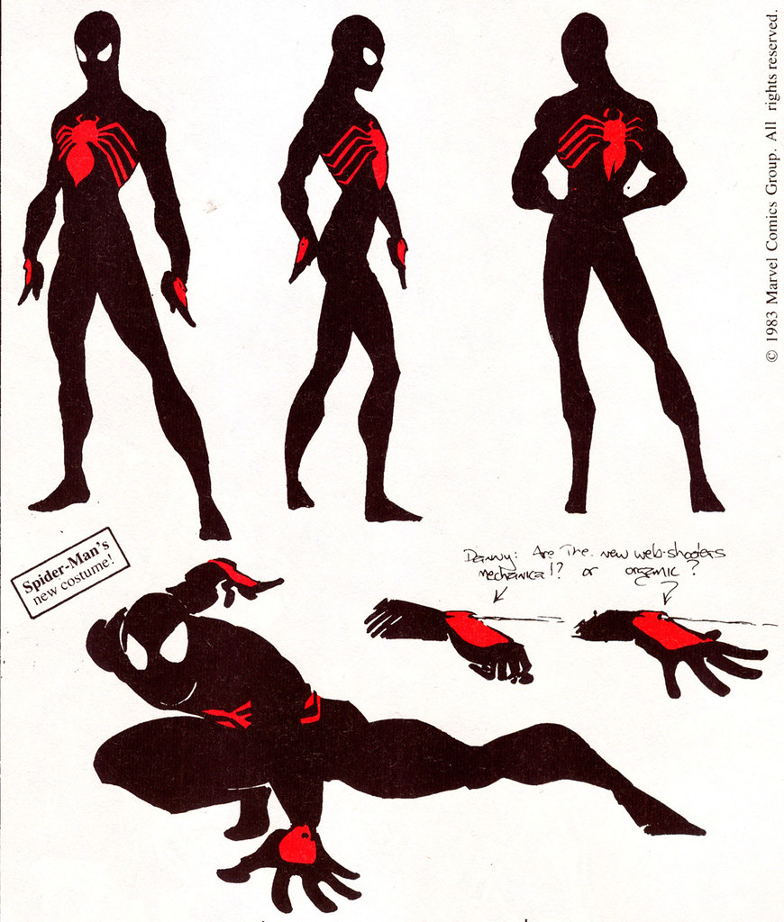 ▼ 經典黑色服裝的蜘蛛人,是由一位漫威的讀者Randy Schueller 所構思,後來被Marvel 編輯部花了220 元美金買下。 後來再由知名畫家Mike Zeck 重新設計,才變成我們現在所熟知的模樣。