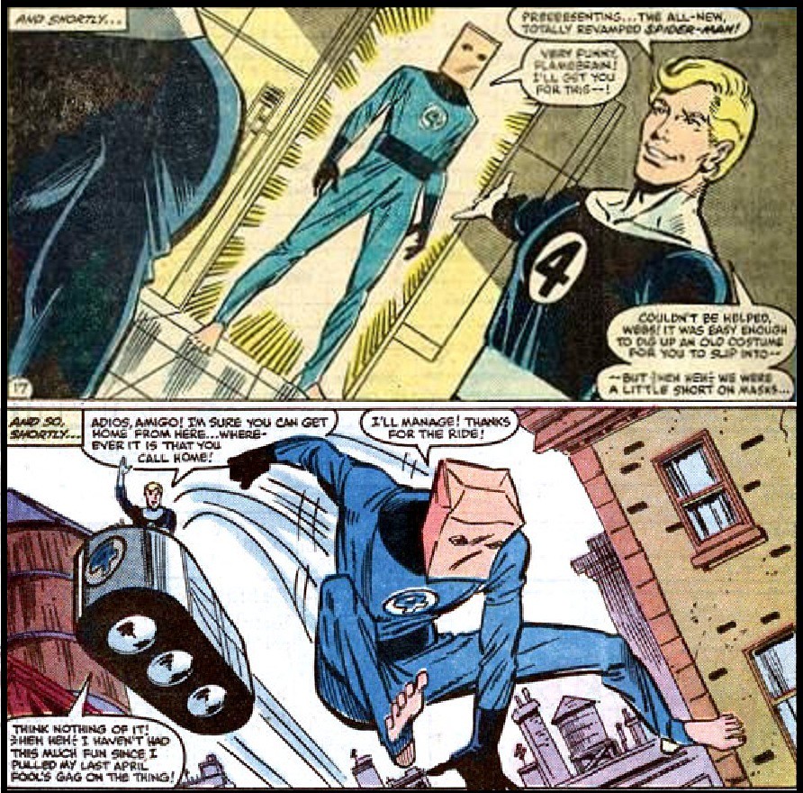 ▼ 玩膩了共生體的死侍,就把服裝推薦給了蜘蛛人,也就是接續下圖的1985年經典場景。