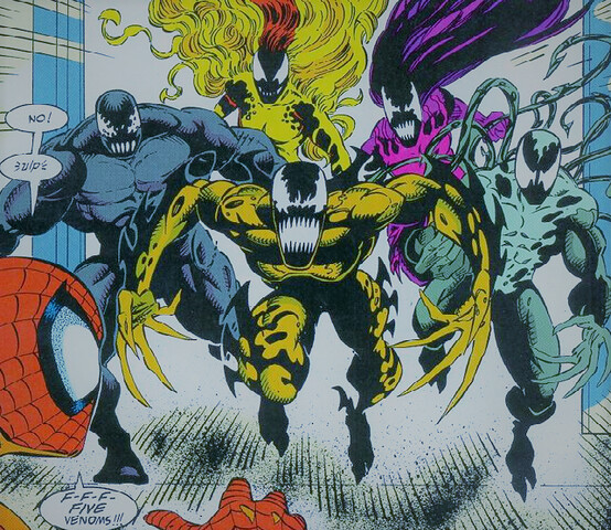 ▼ 離開的共生體再度找上死侍,但由於之前附身在蜘蛛人而獲得相關能力的關係,讓死侍一直被誤會成是蜘蛛人。 為此,死侍最後還是決定分開,並遇到被蜘蛛人揭開新聞造假而失意的艾迪‧布洛克,於是他又間接鼓勵另一個人成為新宿主,就這樣歷史上最著名的反英雄-猛毒因此誕生了。