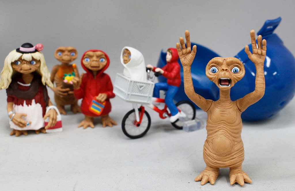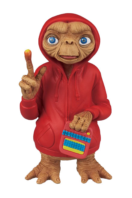 於1982年上映、由「史蒂芬·史匹柏」執導的科幻電影《E.T.》,故事敘述一隻意外來到地球、善良又可愛的外星人「E.T.」和小男孩Elliot 成為好朋友,尤其Elliot 向E.T. 介紹星戰的玩具、一起在空中騎腳踏車、兩人產生某種奇妙連結,以及最後帶有溫馨、不捨、感動......等情緒的離別片段,相信是許多玩具人最美好的回憶之ㄧ!這次T-ARTS 就挑選了數個可以勾起影迷回憶的E.T. 造型、場面為題製作轉蛋作品!