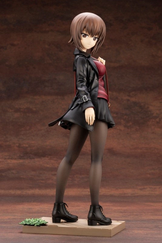 「西住真穗 1/7比例模型」以負責角色原案的「島田文金」老師設計的便服造型為基礎立體化,雕塑出假日時真穗在街道上悠閒散步的場景。真穗身穿黑色皮衣、深紅色針織衣、短裙搭配黑色絲襪,樸素的色彩中散發出成熟的韻味,服裝上也具備細膩的皺摺、鈕扣、扣環等細節,更施以豐富的不同光澤、色調的塗裝呈現皮革、布料的質感,再加上真穗淺淺的回眸一笑極具魅力!