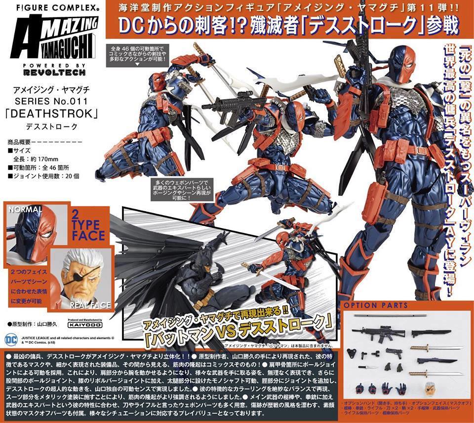 由日本知名玩具品牌海洋堂發行、主打美系超級英雄並有著驚艷可動性的「Amazing Yamaguchi」(アメコミヤマグチ)系列在投下首款DC 震撼彈「蝙蝠俠」之後,玩具人們期待已久的超強傭兵「喪鐘」(デスストローク / DeathStroke)終於公開,預計將於2019年1月發售!!