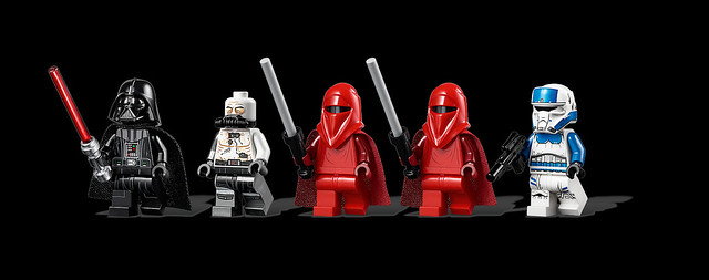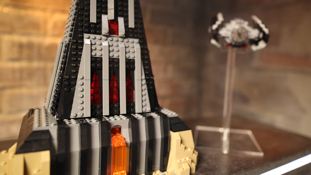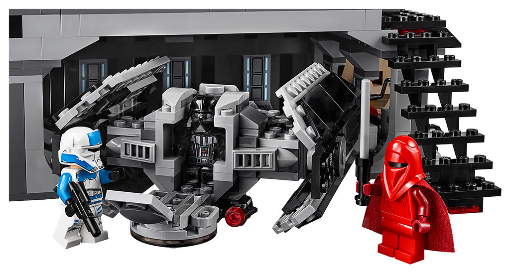 從正面看,本作擁有完整的外觀,並且用上橘色的透明磚營造出岩漿滾滾的地理環境,而轉到背面即可藉著娃娃屋的結構細細把玩豐富的內裝,最底層可以容納一台黑武士的專屬鈦戰機,上層則是浸泡在Bacta Tank 裡的黑武士與兩位帝國皇家禁衛軍,再往上則是超酷的專屬座位和砲塔、駕駛兵;除了這座少見而且精美的私人堡壘之外,本作的一大亮點就是一次給你兩個黑武士,浸泡在能夠快速恢復損傷的Bacta Tank、印刷精美的維德人偶超讚呀!