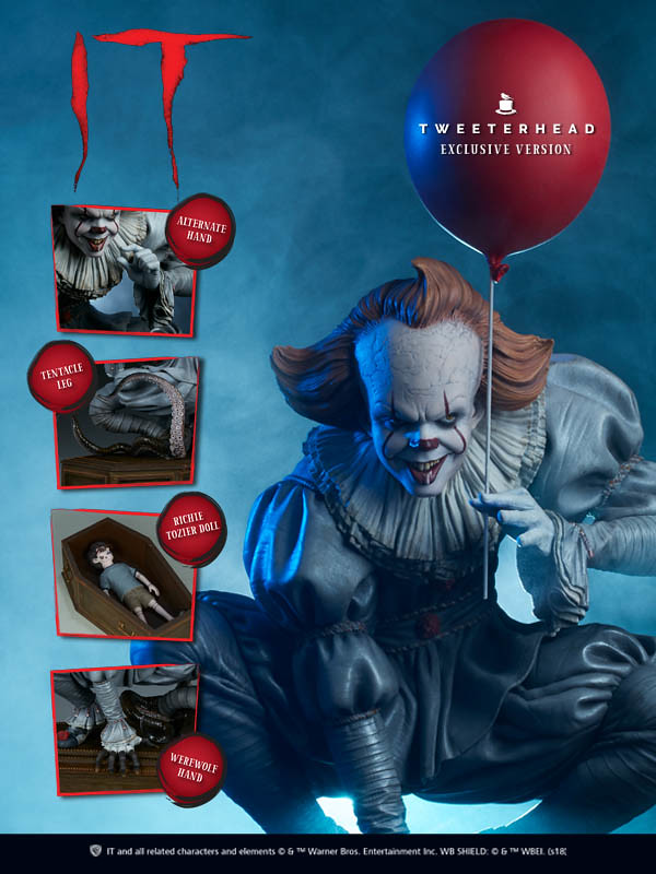 在推出多款美系英雄的「Super Powers」系列雕像後,歐美雕像品牌Tweeterhead 日前正式發表了來自恐怖電影《牠(2017)》的「潘尼懷斯」(Pennywise)1/5 比例全身雕像,預計將於2019年第三季發貨!!