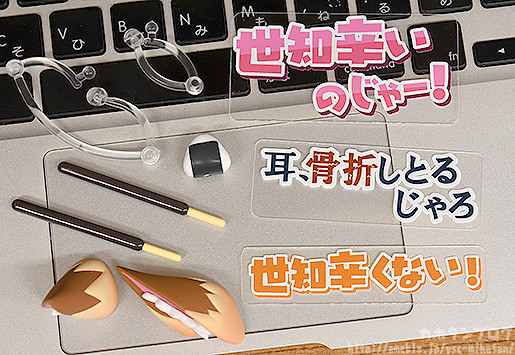 這次的狐娘大叔黏土人作品的表情是以平時在影片當中大家熟悉的那個可愛表情附錄,另外配件還有「飯糰」與「巧克力棒」等等,以及令人印象深刻的台詞透明片,像是「世知辛い(人生真是辛苦)」的經典台詞當然一定要有的,讓玩具人可以重現影片中等等的各式情境,目前先行公開情報預覽照片,對《狐娘大叔》有興趣的玩具人請持續留意玩具人網站後續報導。