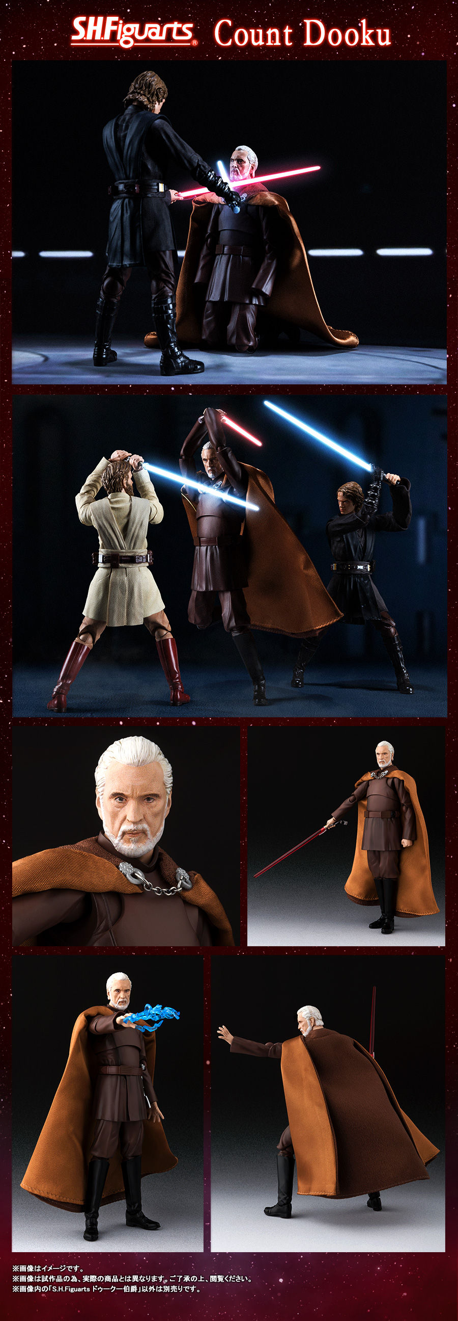 知名日廠BANDAI萬代玩具公司暢銷熱賣的S.H.Figuarts可動系列,以大人氣《星際大戰》電影系列作品為題材已經推出過相當多的角色人物,近日官網繼續公開將推出《星際大戰三部曲:西斯大帝的復仇》劇中所登場的「杜庫伯爵(ドゥークー伯爵)」的系列續作,近日公開其情報預覽照片以及販售相關資訊。