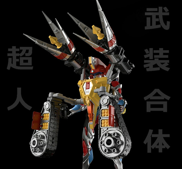 ▼ 第二合體型態:武裝合體超人「BUSTER GRIDMAN」。以大量可動軸再現變形結構。