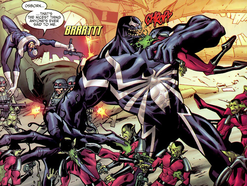 最後一幕猛毒威脅一個幫派分子,說到「眼睛、肺、胰臟….這麼多小吃」的名台詞,是引用The Amazing Spider-Man第374期,他與蜘蛛人大戰時對彼得說的話,不過漫畫當時猛毒還是惡棍想把蜘蛛人給吃了,跟電影決定成為一個反英雄只吃壞人的心境反而成了一個對比。