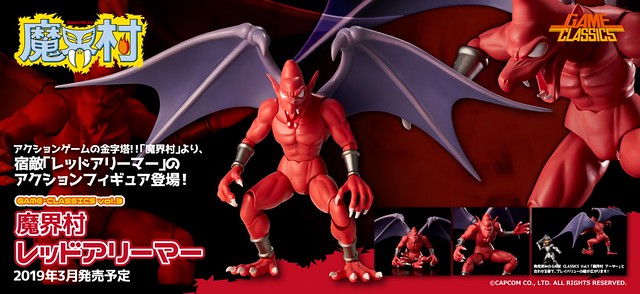 由日廠Union Creative玩具公司以「GAME・CLASSICS」系列將電玩遊戲的角色人物可動化,第一彈公開過《魔界村》的「亞瑟」以及第二彈 《噴射廣播電台》「節奏」之後,第三彈將繼續推出《魔界村》電玩遊戲中的「紅惡魔(レッドアリーマー)」!官網近日公開其情報預覽照片以及販售相關資訊。