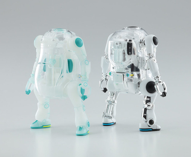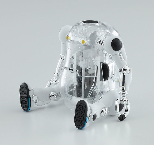 這次將以相當透明的塑料材質來呈現有著"透明"外殼的35機動機器人,還配上部份有著銀電鍍色的樣貌真是十分有科技感覺,另外半透明白色的版本也一樣可以看見裡面的駕駛員,此次的包裝盒繪應該也是會交由「新井圭一」老師來繪製,自行組裝的35機動機器人行走姿勢或是坐姿都可隨自己的喜好來調整它們,推薦給喜歡小尺寸可動玩具的玩具人參考。